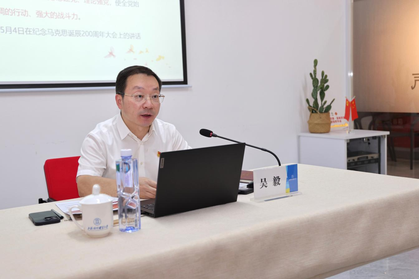 为深入推进学习贯彻习近平新时代中国特色社会主义思想主题教育,增强师生党员对党的创新理论的政治认同、思想认同、理论认同、情感认同,6月9日下午,校党委副书记吴毅在学校党建服务中心为师生党员作题为《学深悟透新时代党的创新理论 凝心铸魂培育时代新人》的专题党课。金融管理学院财务管理系教工党支部、金融管理学院本科学生第一党支部、会展与传播学院本科生党支部、组织部党支部和学校相关职能部门师生党员代表参加了学习。专题党课由组织部部长陈加林主持。