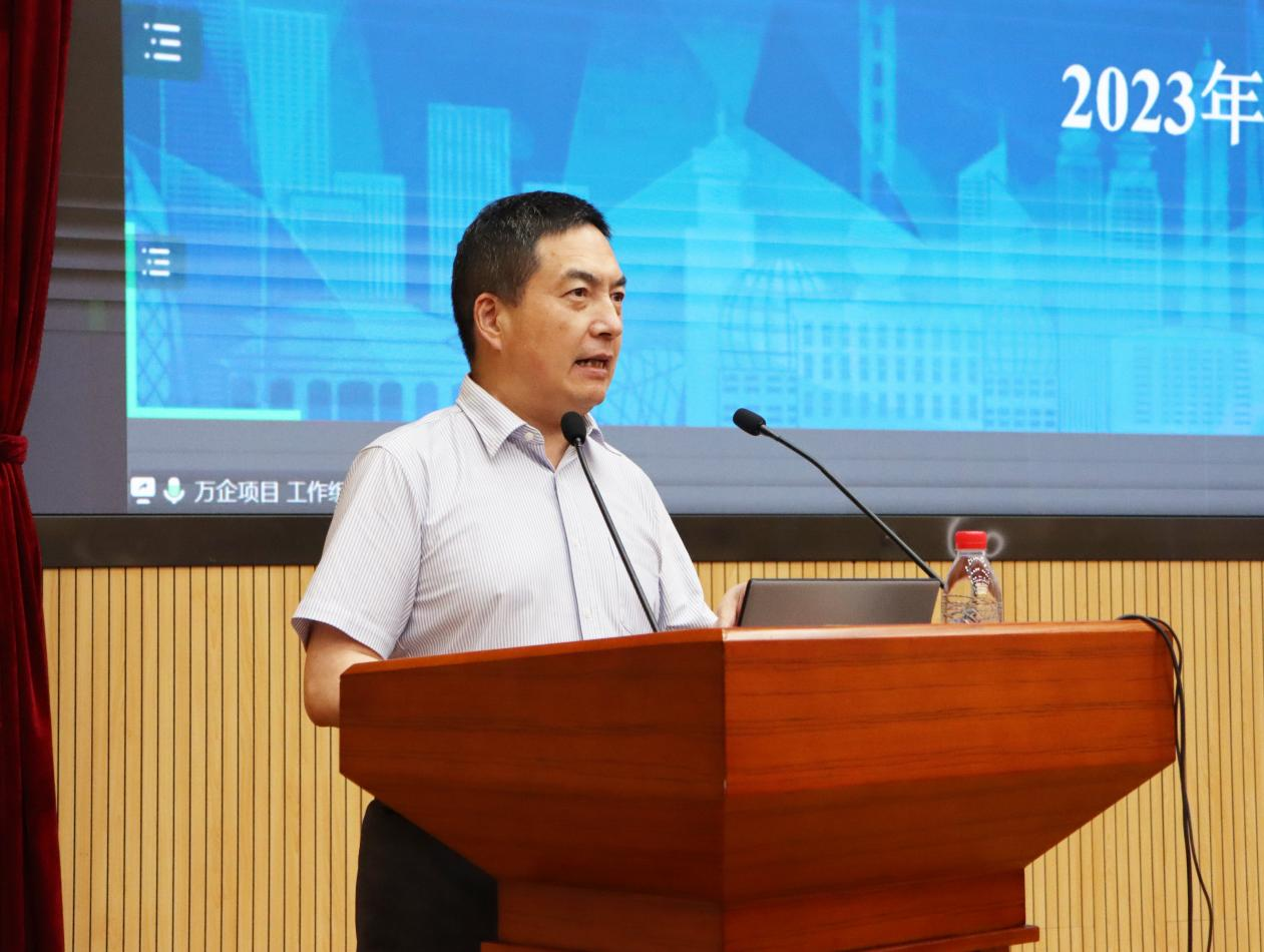 为庆祝中国共产党成立102周年,以大调研服务中国式现代化,6月26日下午,2023年“访万企,读中国”社会调查项目临时党支部在学校松江校区思源报告厅,以“练就调查研究本领,为服务中国式现代化贡献力量”为主题开展了一场主题党日活动。商务部中国对外经济贸易统计学会名誉会长王亚平,上海交通大学上海高级金融学院党委书记、特聘教授朱启贵,上海对外经贸大学统计与信息学院党委书记刘素贞、副院长王利娟、经济统计系主任李佩瑾、临时党支部全体师生党员,与200余名调查队员以线上线下的方式参加了本次活动。活动由项目临时党支部书记、经济统计系教工党支部书记司继春主持。