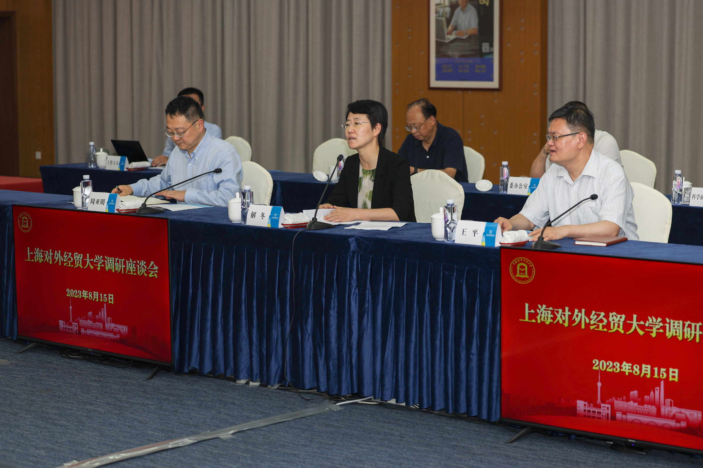 座谈会上,解冬听取了学校的工作汇报,并进行了互动交流。她表示,近年来上经贸大领导班子团结进取,紧密结合上海和国家的战略需求,积极发挥特色优势,加强战略谋划和前瞻布局,并脚踏实地的将“规划图”变为“实景图”,取得良好发展成效,令人印象深刻。她指出,市属高校的发展要有鲜明特色,并做好传承,在各自的优势领域为上海的发展作出新的更大贡献。她对学校发展提出三点希望:一是聚焦主业,紧紧围绕“外”“经”“贸”三个字,将特色优势“长板拉长”,用学校的“硬实力、强特色”去支撑上海深化“五个中心”建设;二是坚持在危机中育先机,进一步做好学科建设与人才培养等工作,聚焦国际组织人才、涉外法治人才培养,高度重视智库建设,凝聚好校友力量,在推进制度型开放、开展高水平开放压力测试等领域更好发挥作用;三是面对事业发展瓶颈问题,保持战略定力、坚持久久为功、做好挖潜增效,同时市政府会加大支持力度,帮助学校各项事业赋能融合、创新发展。
