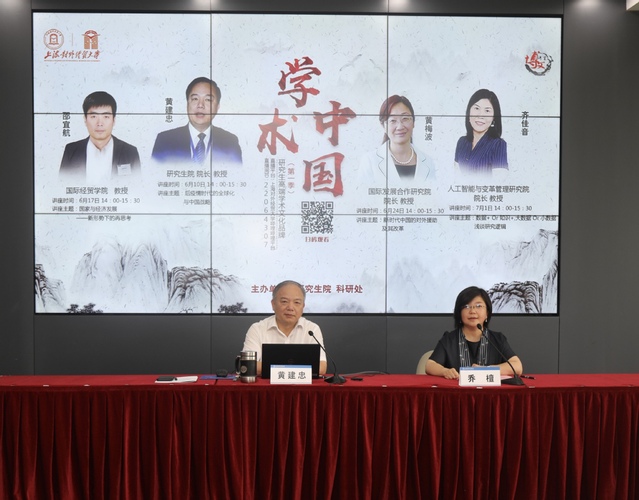 为迎接学校60周年校庆,进一步丰富防疫期间研究生学术生活,6月10日下午,研究生院校庆系列活动“学术中国”(第一季)首场讲座在学校哔哩哔哩平台直播开讲。研究生院院长、国际经贸学院院长,博士生导师黄建忠教授作了题为“‘疫情热’下中国开放经济的‘冷思考’”的学术讲座。讲座由党委研工部副部长、研究生院副院长乔檀主持。2000多名师生在线观看了本场讲座。