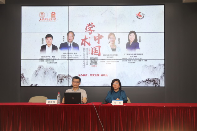 6月17日下午,研究生院校庆系列活动“学术中国”(第一季)第2期讲座在上海对外经贸大学哔哩哔哩平台直播,邀请国际经贸学院邵宜航教授做了题为“国家与经济发展——新形势下的再思考”学术讲座。讲座由党委研工部副部长、研究生院副院长乔檀主持。2000余名师生在线收看了讲座。