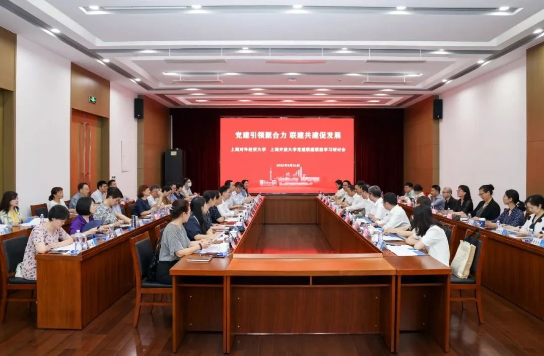8月24日下午,学校与上海开放大学举行“党建引领聚合力,联建共建促发展”党建联建联组学习研讨会。上海开放大学党委书记楼军江,党委副书记、副校长孙向彤,副校长张瑾、郑益慧;上海对外经贸大学党委书记殷耀,校长汪荣明,党委副书记吴毅,党委副书记、纪委书记章益国,副校长徐永林出席研讨会。会议由殷耀主持。