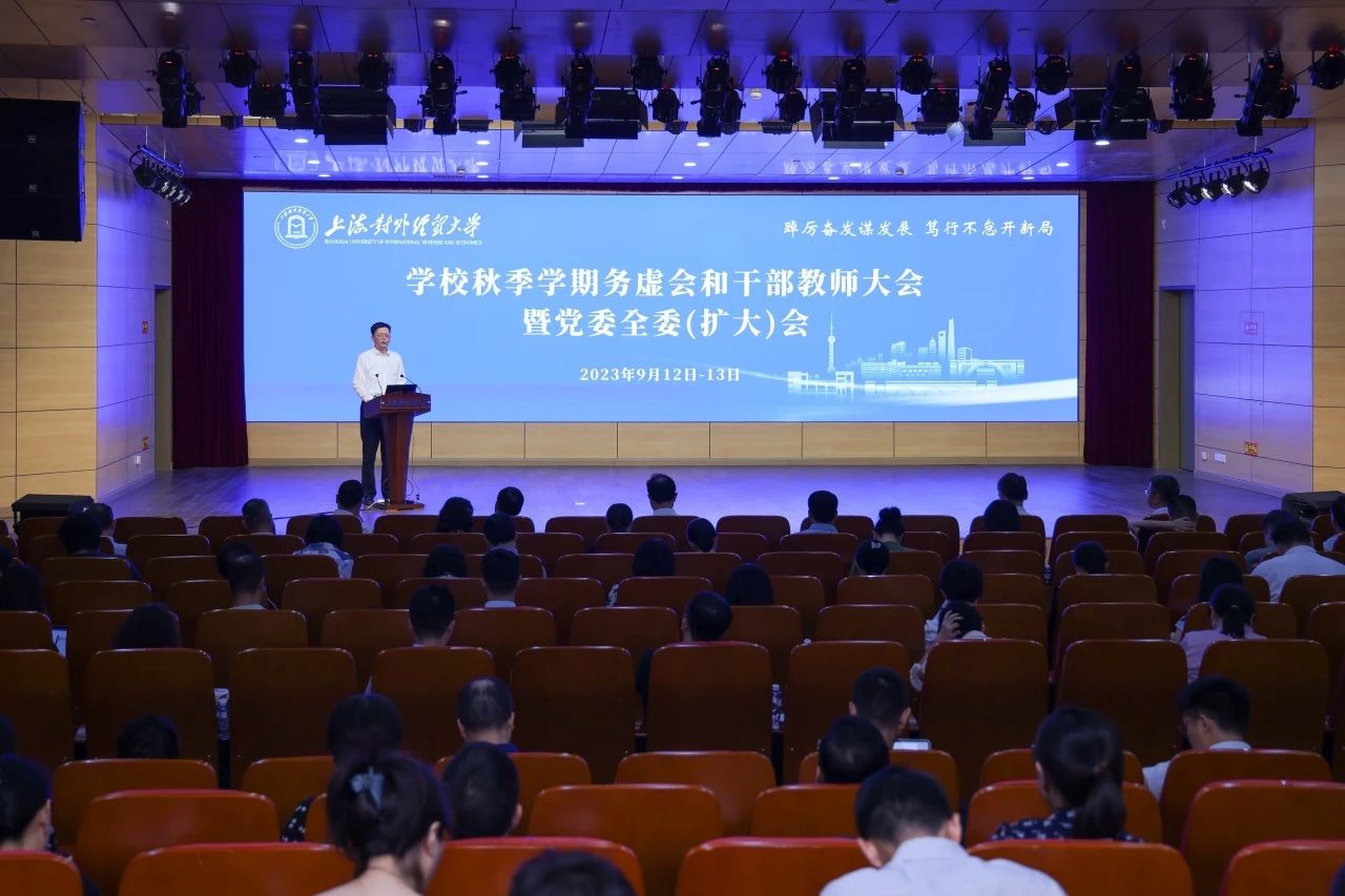 9月12-13日,学校2023年秋季学期务虚会和干部教师大会暨党委全委(扩大)会在古北校区综合楼506报告厅召开。本次会议以习近平新时代中国特色社会主义思想为指导,以“踔厉奋发谋发展,笃行不怠开新局”为主题,围绕学校对外战略合作交流、国际组织人才培养等重要领域,通过主旨报告、分组研讨等形式开展学习和交流。学校领导班子成员,全体党委委员、纪委委员、中层领导人员,部分党代会代表、教代会代表,民主党派、无党派人士、统战团体代表,党支部书记代表、科研骨干代表、青年教师代表等出席会议。校党委书记殷耀作动员讲话,校长汪荣明作总结讲话。校党委副书记、副校长祁明,党委副书记、纪委书记章益国分别作主旨报告,校党委副书记吴毅、副校长徐永林分别主持会议相关环节并对主旨报告作点评。