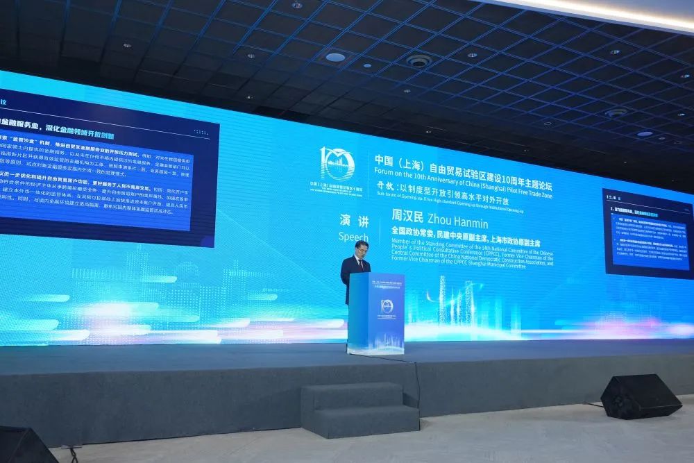 上证报中国证券网讯(记者 宋薇萍)9月20日,中国(上海)自由贸易试验区建设10周年主题论坛在上海举行。在“以制度型开放引领高水平对外开放”为主题的开放分论坛上,全国政协常委周汉民以《自贸区高质量发展要进一步融入国际规则》为题发表主题演讲。