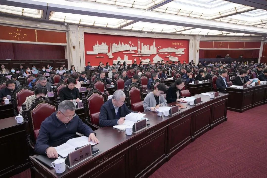 市人大常委会主任黄莉新主持并讲话。市人大常委会副主任郑钢淼、周慧琳、宗明、陈靖等出席。市人大常委会驻会组成人员和机关干部,各区人大常委会负责同志等200余人参加会议。
