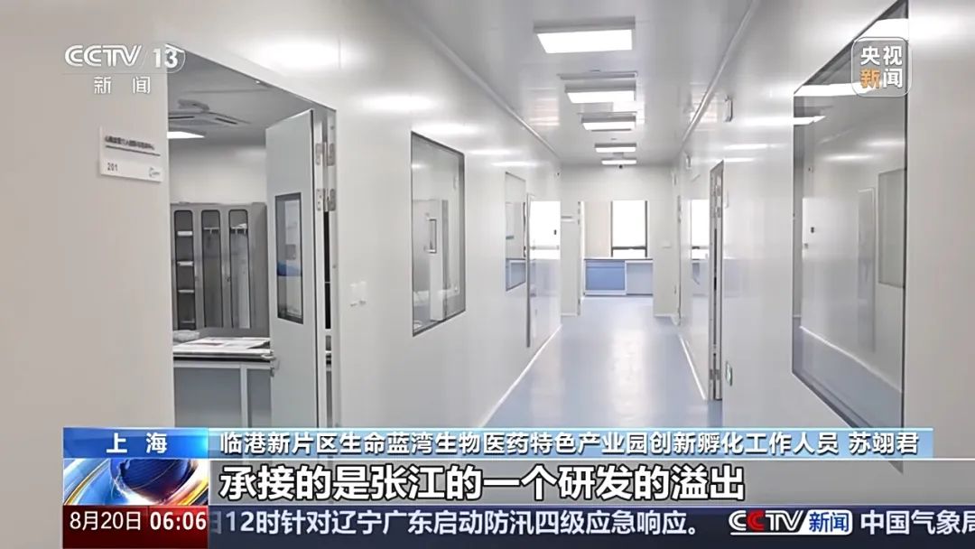 临港新片区生命蓝湾生物医药特色产业园创新孵化工作人员 苏翊君:原本其实有很多生产制造型的企业,承接张江的研发溢出。这两年着重导入生物医药的创新源头,能够落地在这里面。